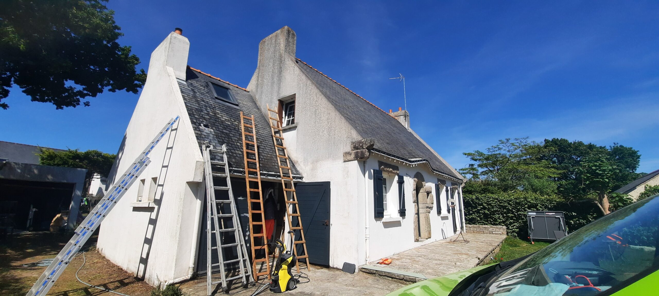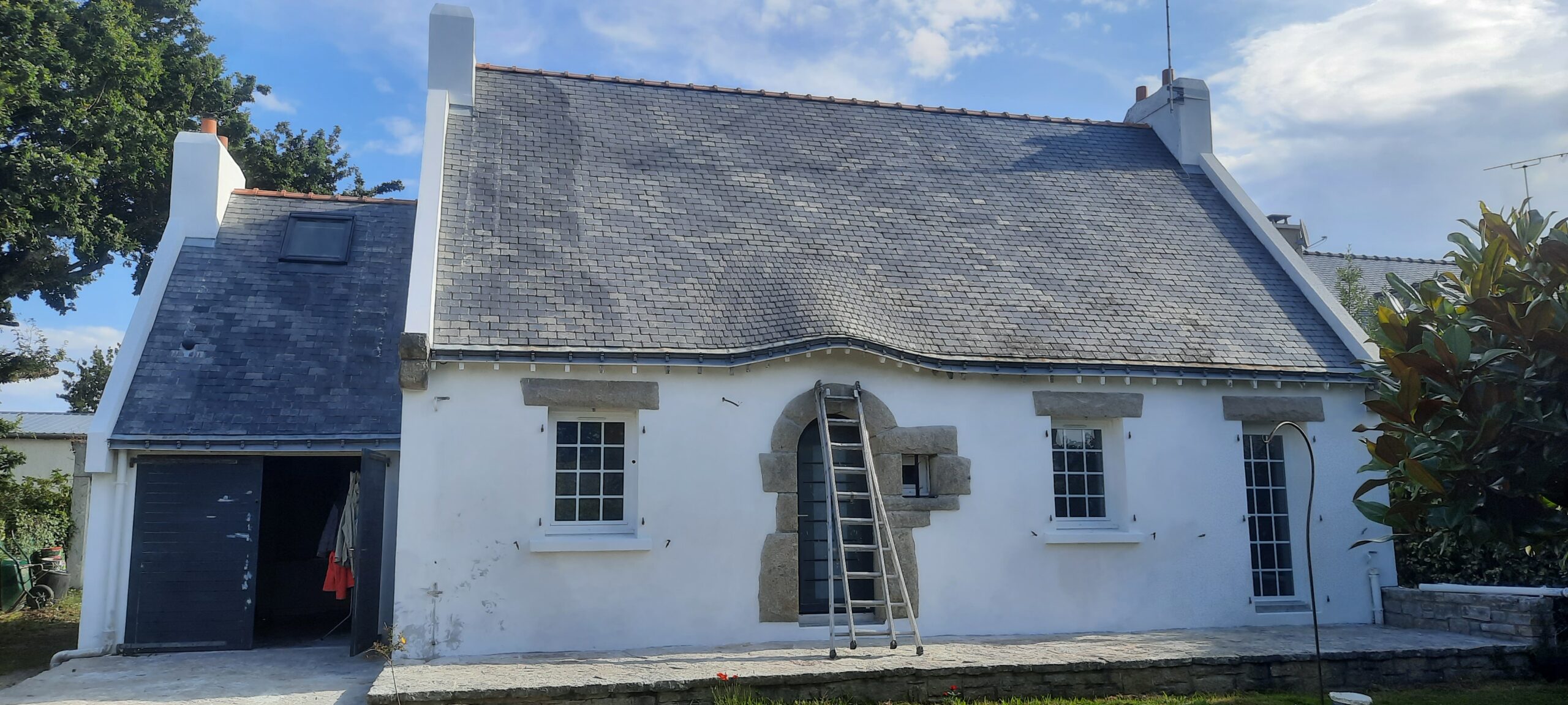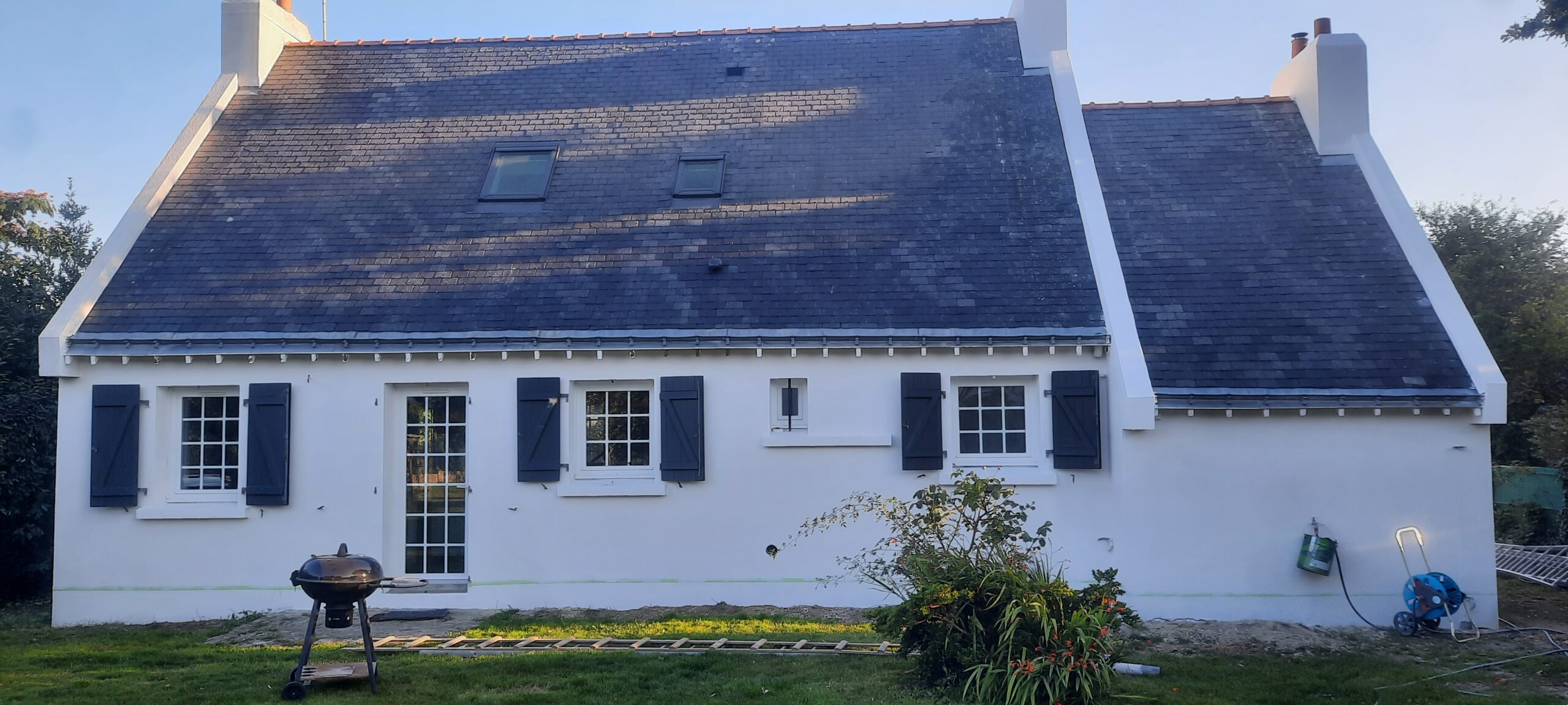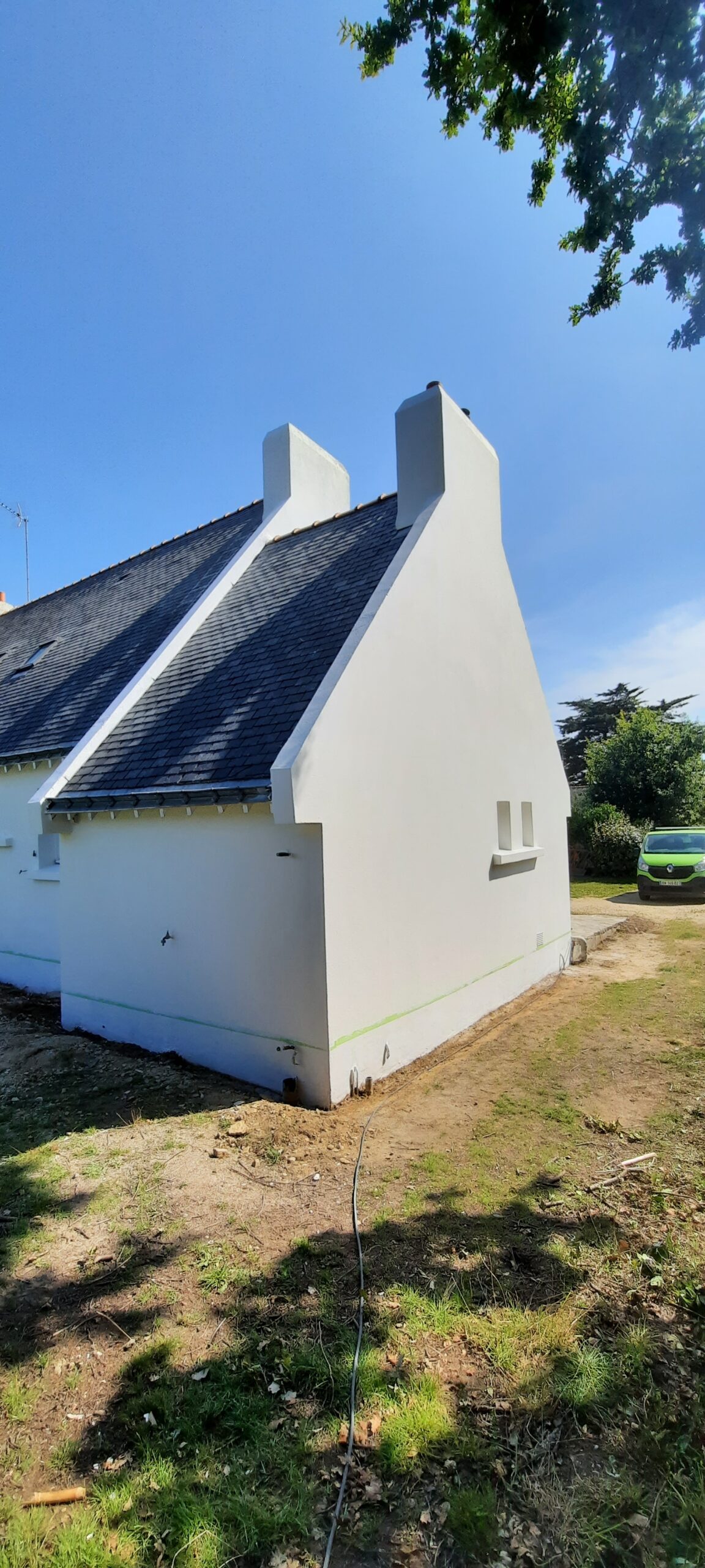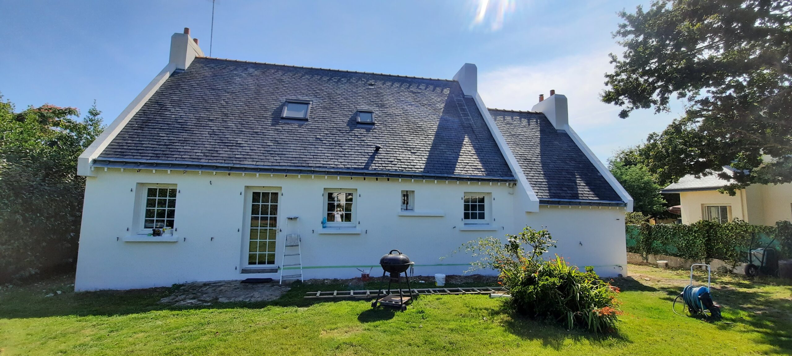 - Mise en peinture de la façade, pignons et cheminées avec peinture spéciale extérieur