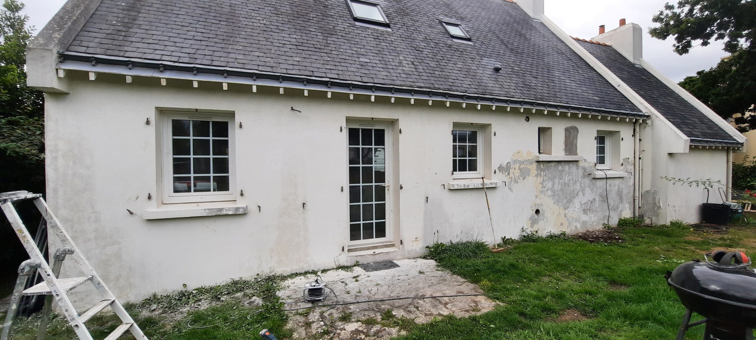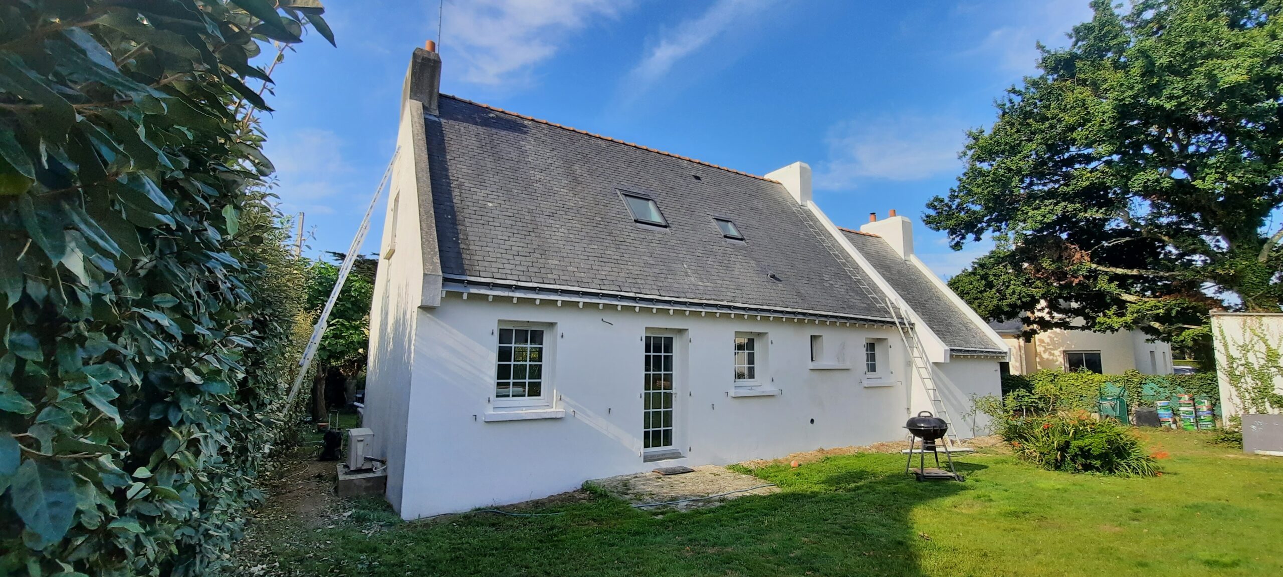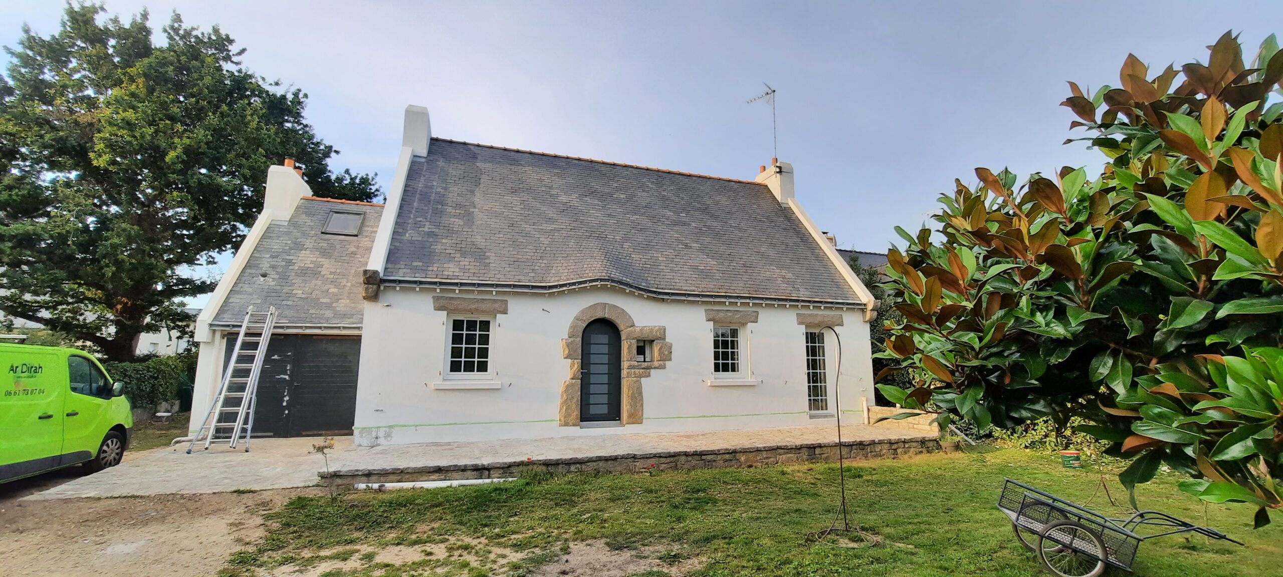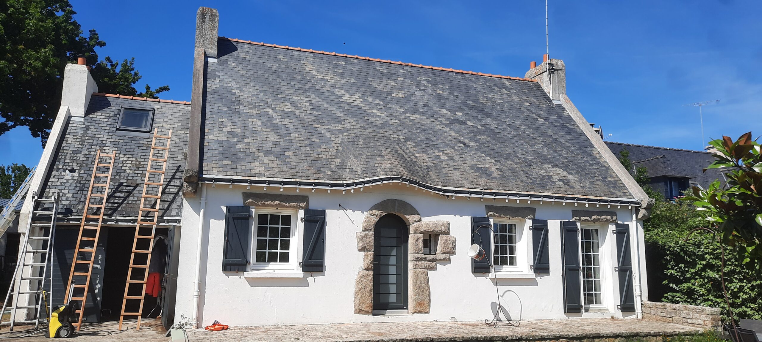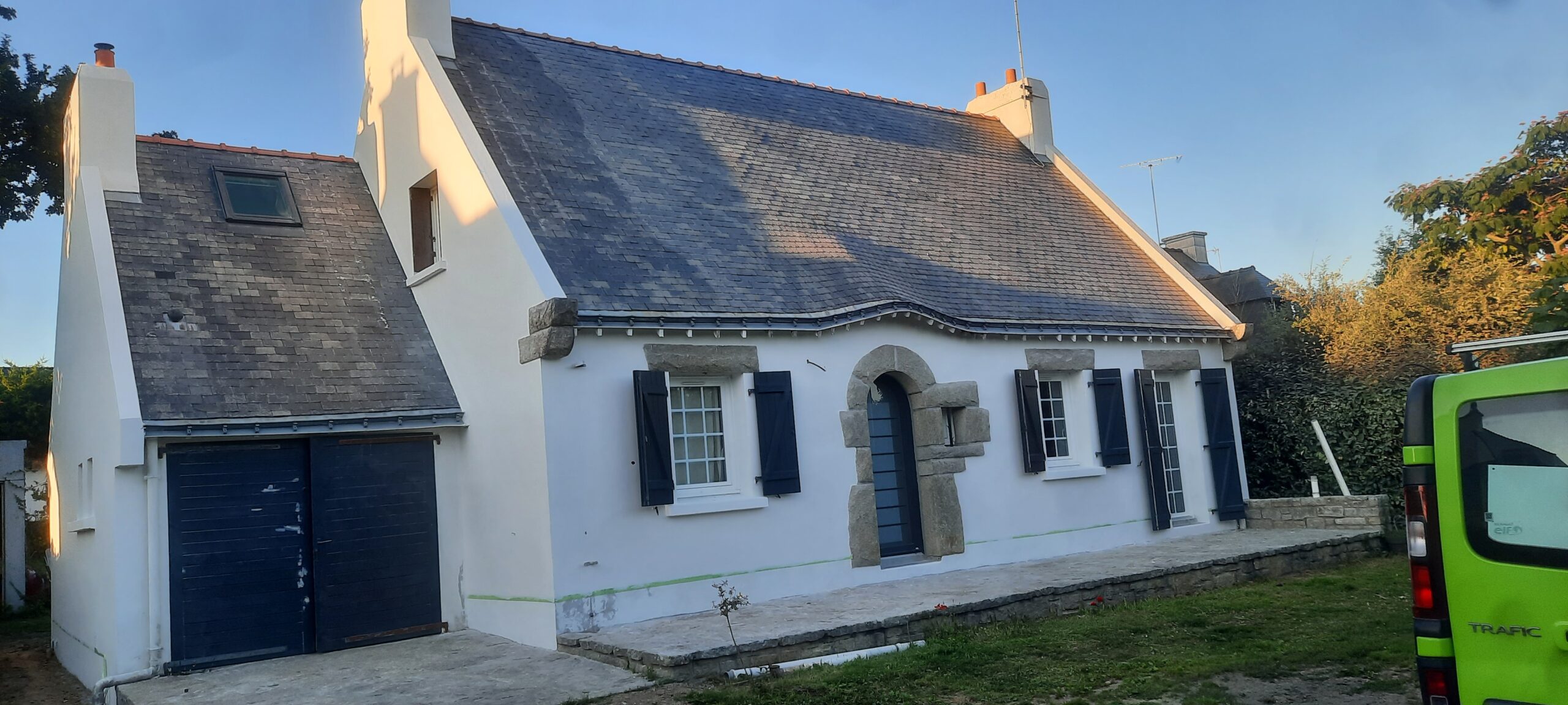 - Mise en peinture de la façade, pignons et cheminées avec peinture spéciale extérieur