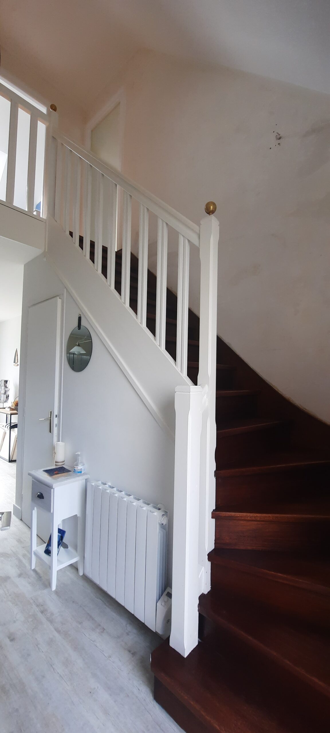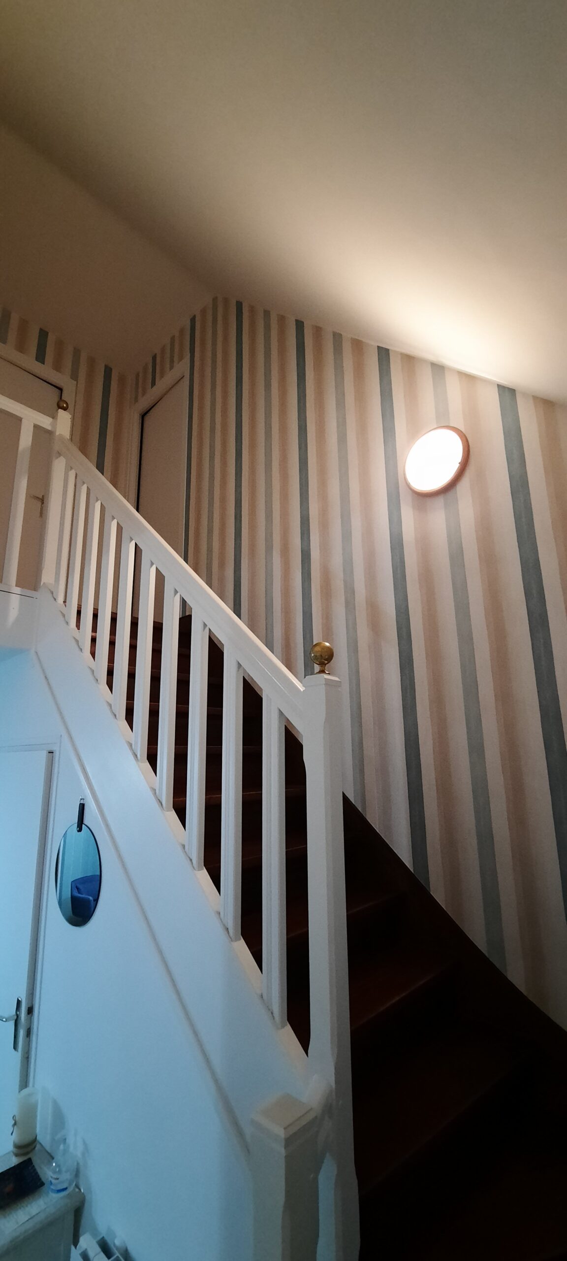 Dans une maison habitée dans laquelle Ar Dirah a réalisé l’ensemble du rez-de-chaussée quelques années au préalable, rénovation de la cage d’escalier.